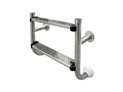 Лестница без поручней 2 ступени Emaux BHL215-S (88077101) из нержавеющей стали марки AISI-304. Состоит из трех одинарных ступенек с противоскользящими пластиковыми накладками. Крепежные элементы - анкерные болты. Лестница предназначена для полностью заглубленных бассейнов с узким бортом. Верхняя часть лестницы крепится с помощью анкерных болотов, а нижняя упирается в стену бассейна.