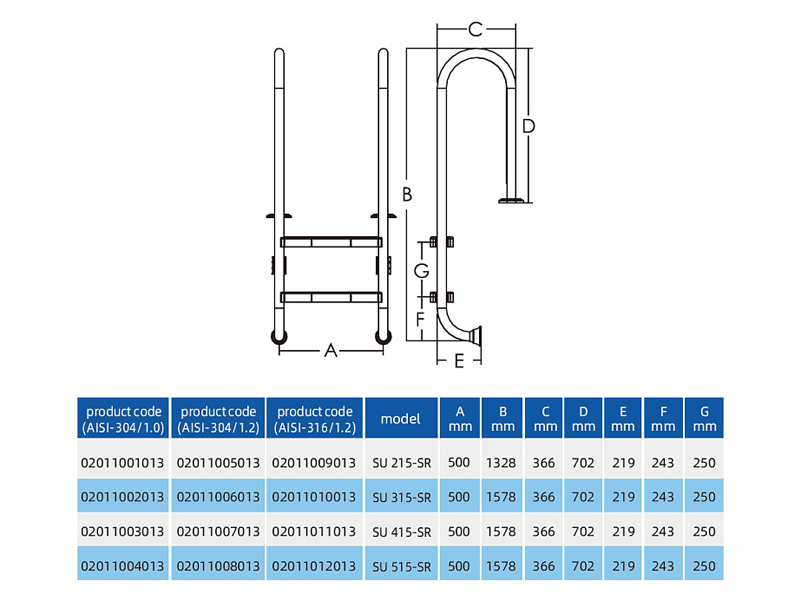 Лестница MARKOPOOL MURO SU (у.б.) AISI-304 (5 ступеней) - предназначена для удобного и безопасного спуска в бассейн. Лестница изготовлена из нержавеющей стали (AISI-304). Пластиковые накладки на ступени предотвращают проскальзывание ног купающихся. В комплекте имеются стаканы для установки в бетон (при заливке). Для установки на другие поверхности, необходимо приобрести фланцевые адаптеры.